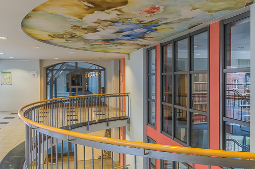 Treppenhaus mit Blick auf die Bücherei